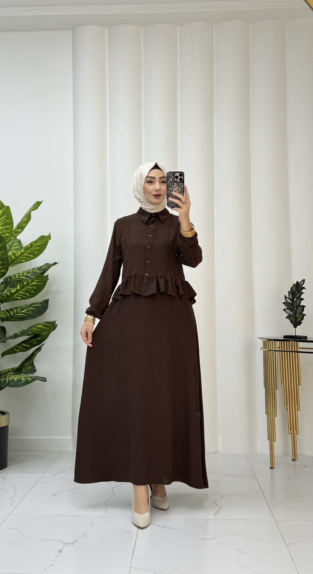 Zarafeti ve şıklığı bir araya getiren iki parçalı özel takım. İç elbisesi sıfır kollu olup, ceket kısmı taş detaylarıyla zenginleştirilmiştir. 1. sınıf İtal Ayrobin kumaşıyla hem konforlu hem de şık bir duruş sunar.