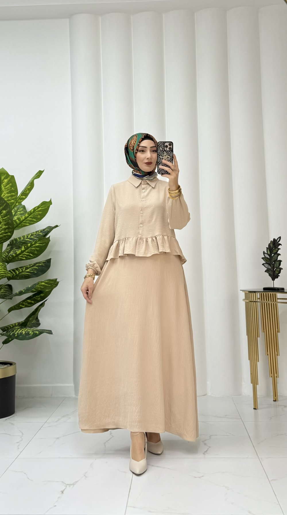 Zarafeti ve şıklığı bir araya getiren iki parçalı özel takım. İç elbisesi sıfır kollu olup, ceket kısmı taş detaylarıyla zenginleştirilmiştir. 1. sınıf İtal Ayrobin kumaşıyla hem konforlu hem de şık bir duruş sunar.