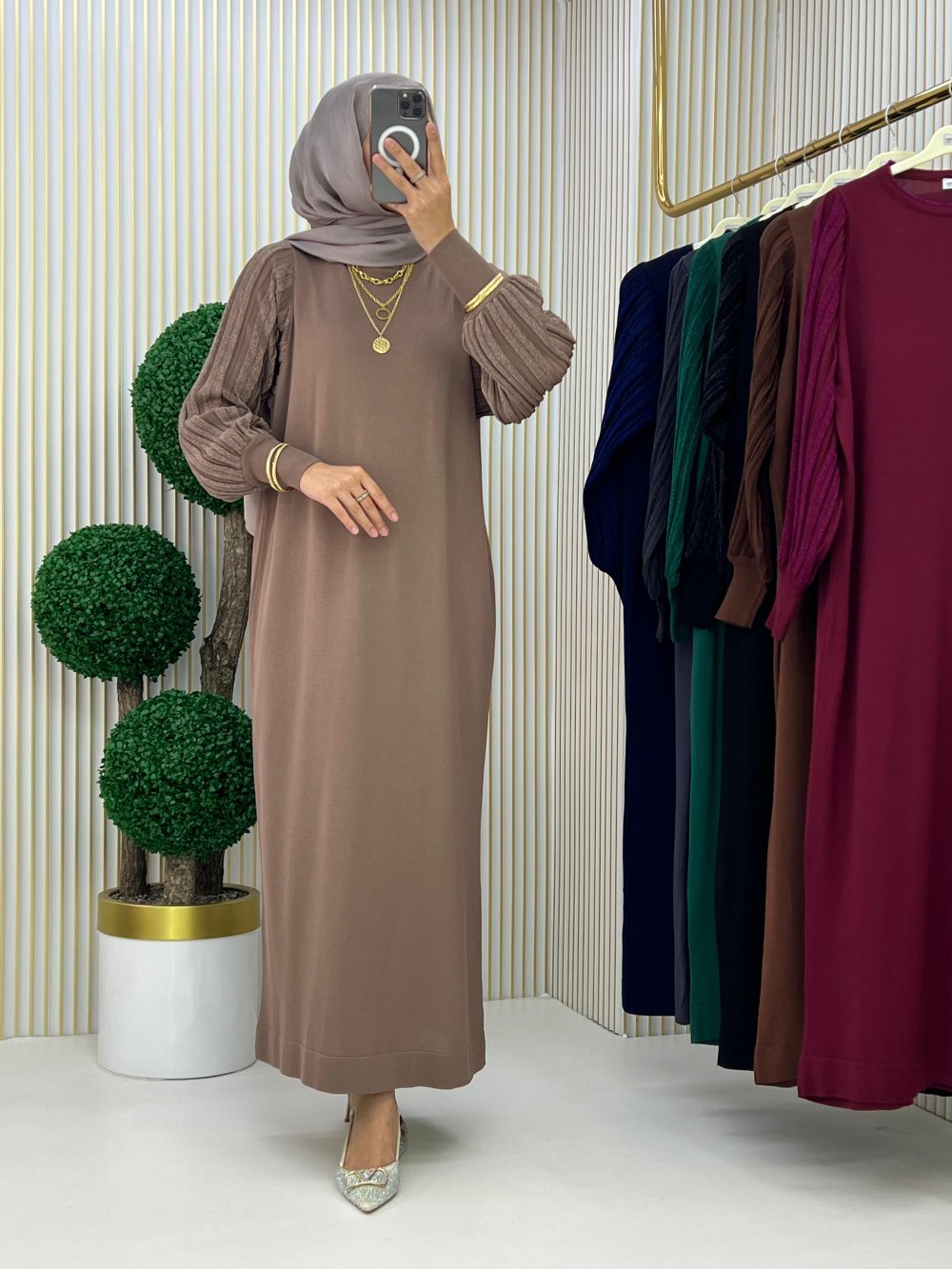 Sarmaşık Elbise vizon