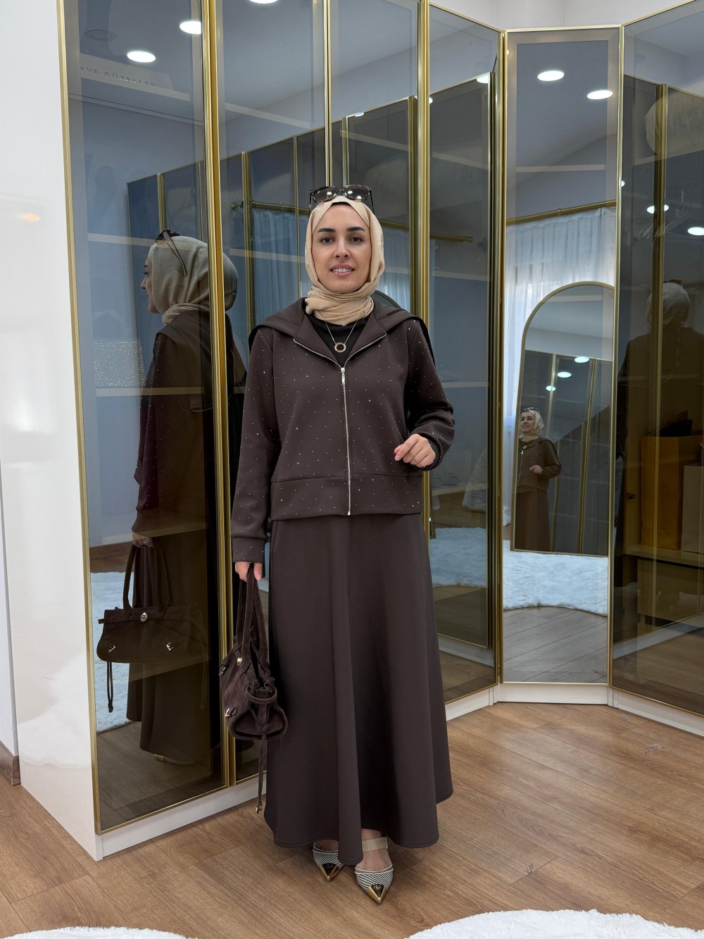 Scuba Taşlı Takım Kahverengi