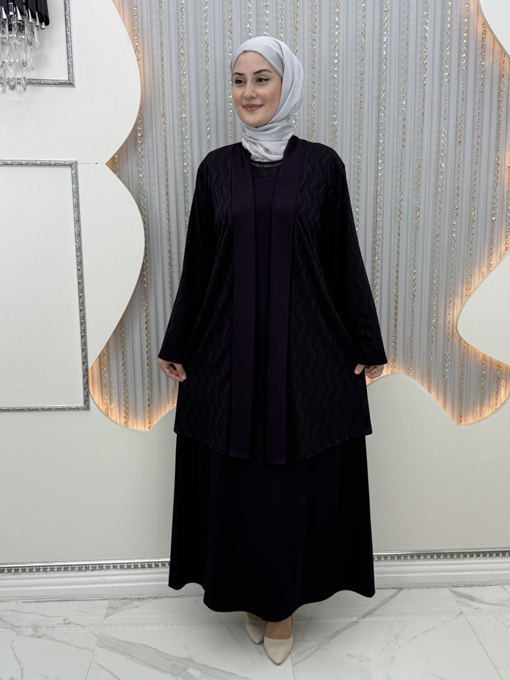 Selen Elbiseli Hırka Mor