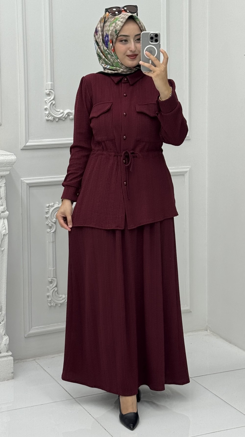 Selmira Etek Takım , hem iş hem de günlük hayatınızda rahatlıkla tercih edebileceğiniz çok yönlü bir parçadır. Şıklığı konforla buluşturan bu tasarım, sezonun en gözde modellerinden biri olacak!