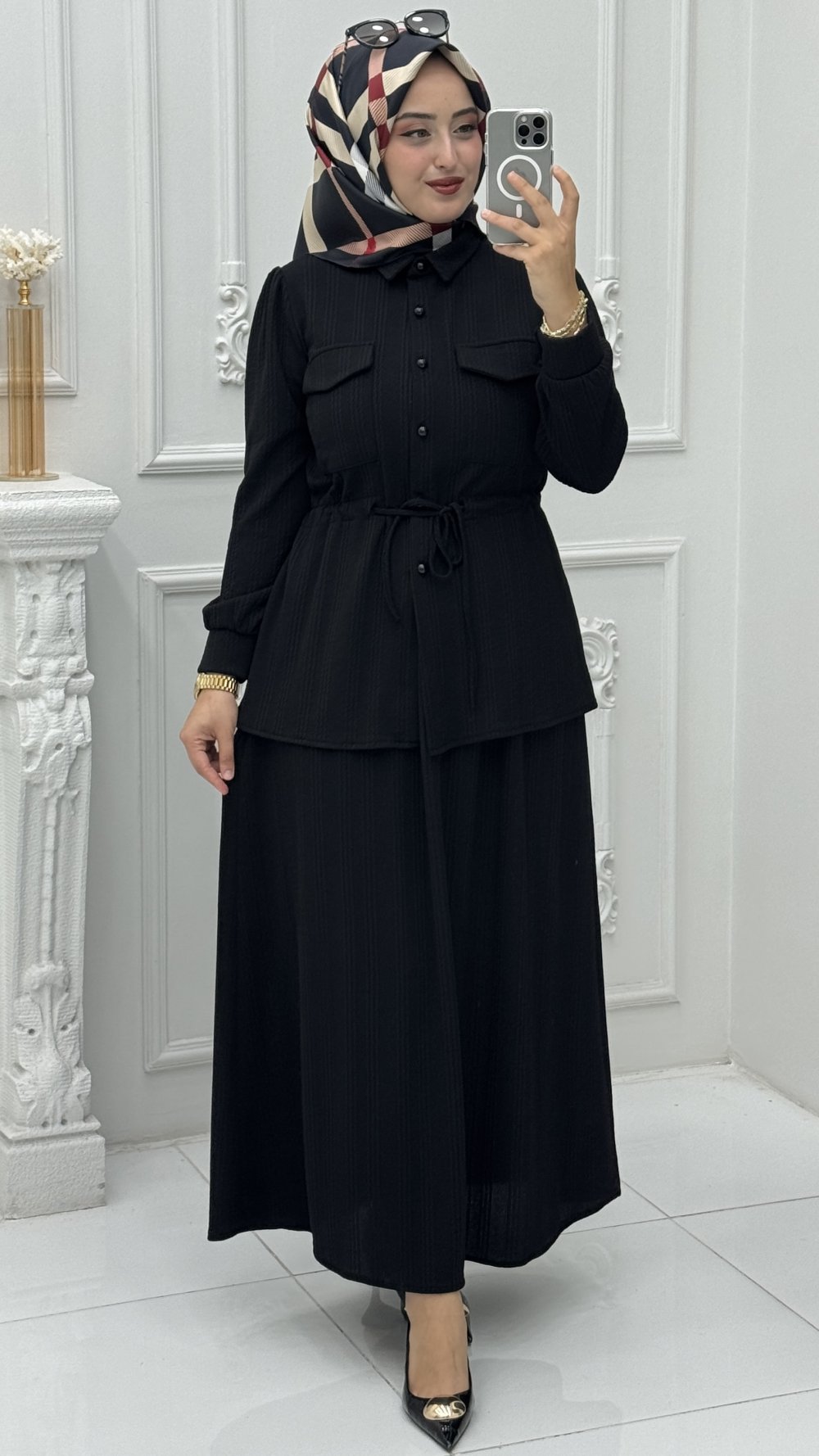 Selmira Etek Takım , hem iş hem de günlük hayatınızda rahatlıkla tercih edebileceğiniz çok yönlü bir parçadır. Şıklığı konforla buluşturan bu tasarım, sezonun en gözde modellerinden biri olacak!