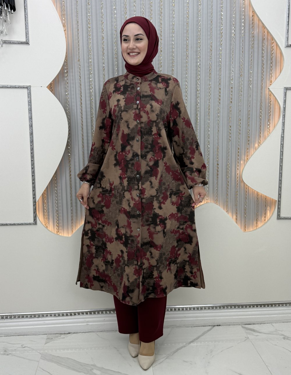 Serpil Pantolonlu Takım Bordo
