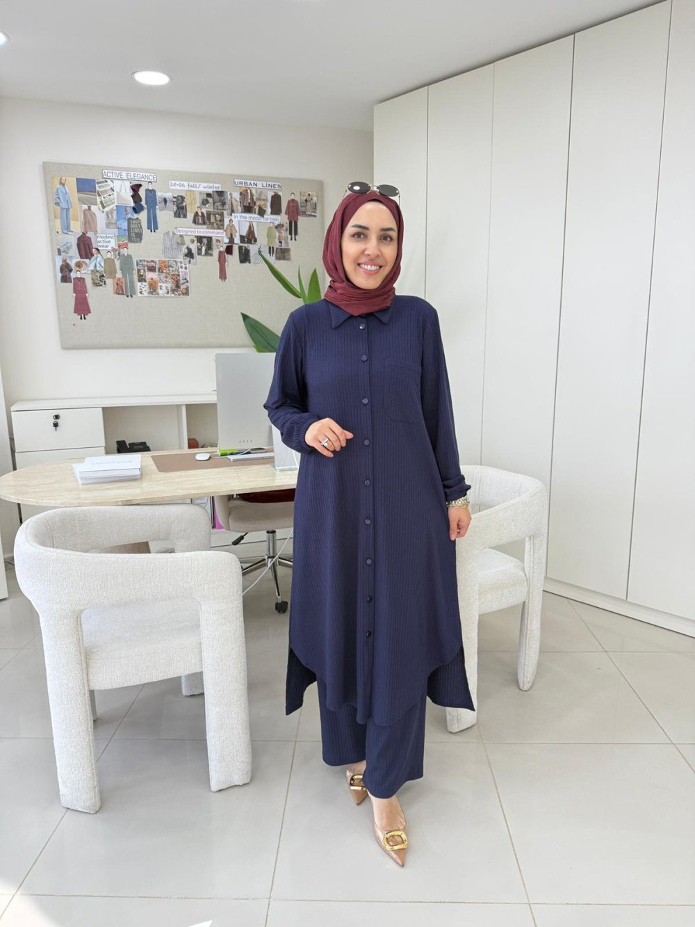 Tunik ön boy 115 cm, arka boy 120 cm’dir.