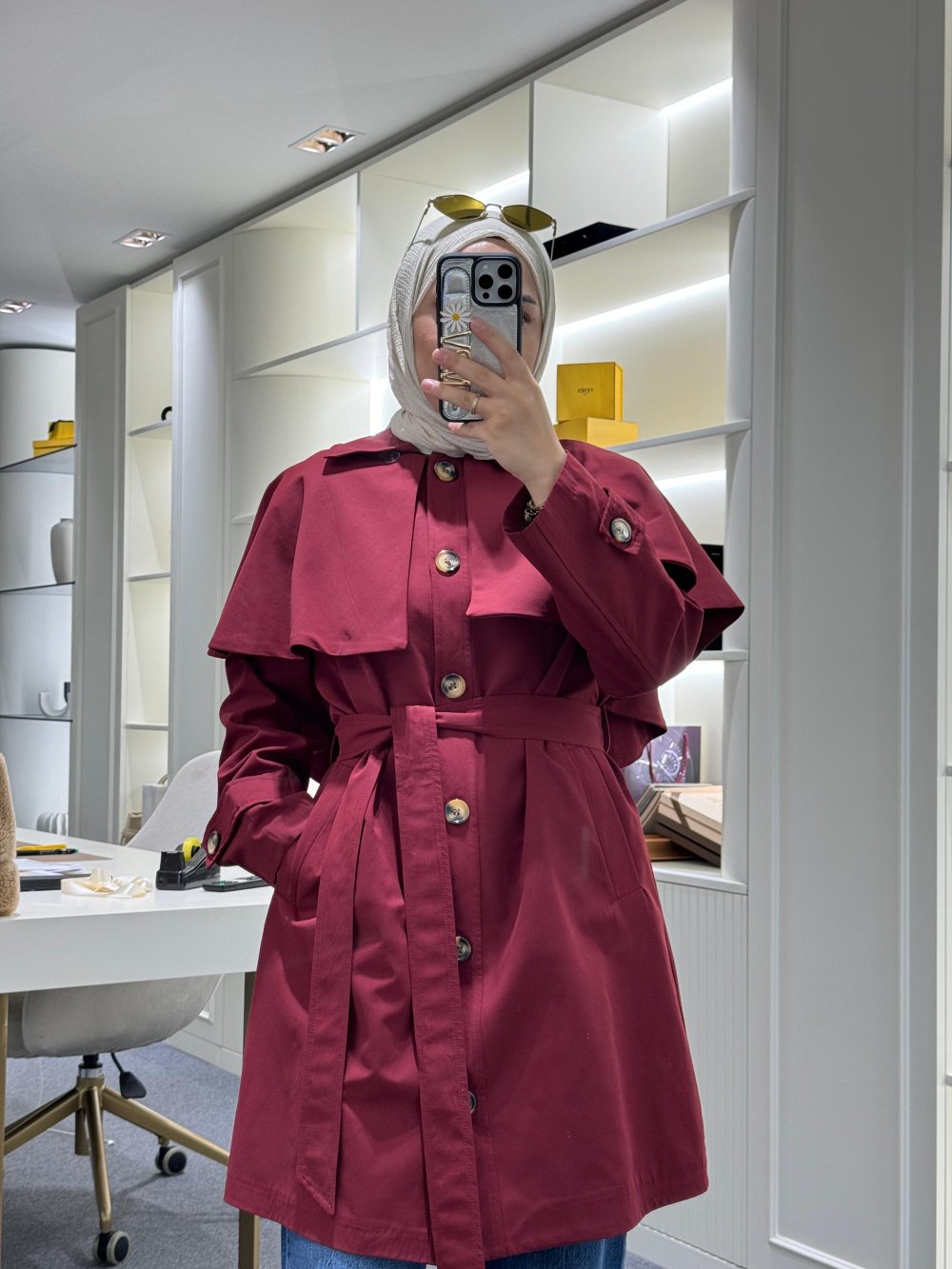 Seyyar Pelerinli Trençkot Bordo