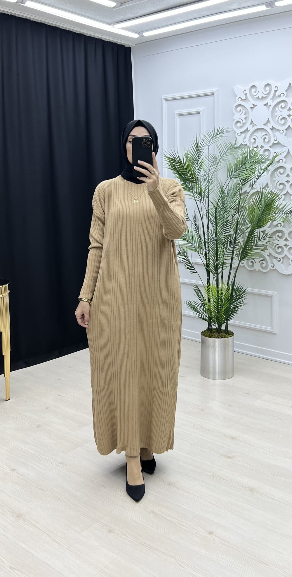 Sezen triko elbise Camel