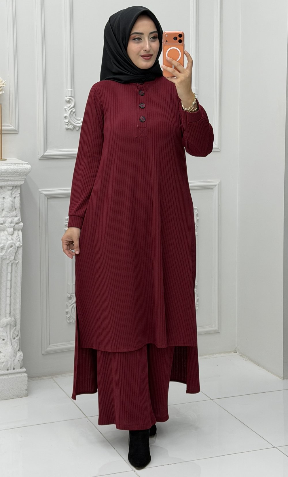 Rahatlık ve şıklığı bir araya getiren Sude Takım,sade ama zarif duruşuyla günlük kombinlerinizi güçlendiriyor. Yumuşak kumaşı ve esnek yapısı sayesinde gün boyu konfor sunarken, modern kesimiyle stil sahibi bir görünüm yaratır.