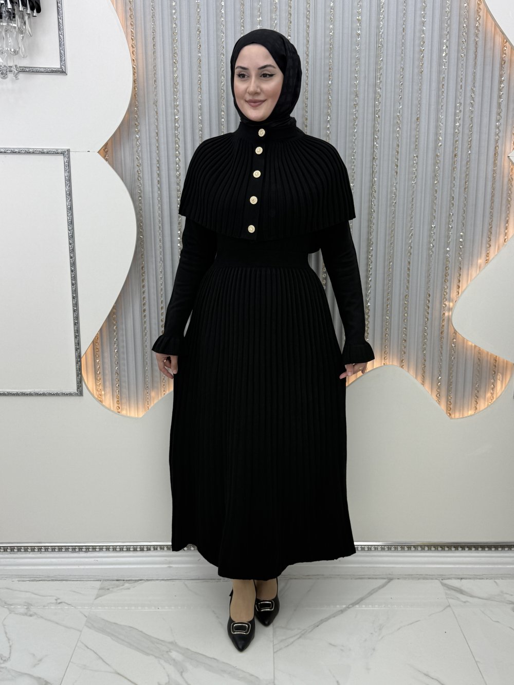 Pelerin önden taş düğmeli