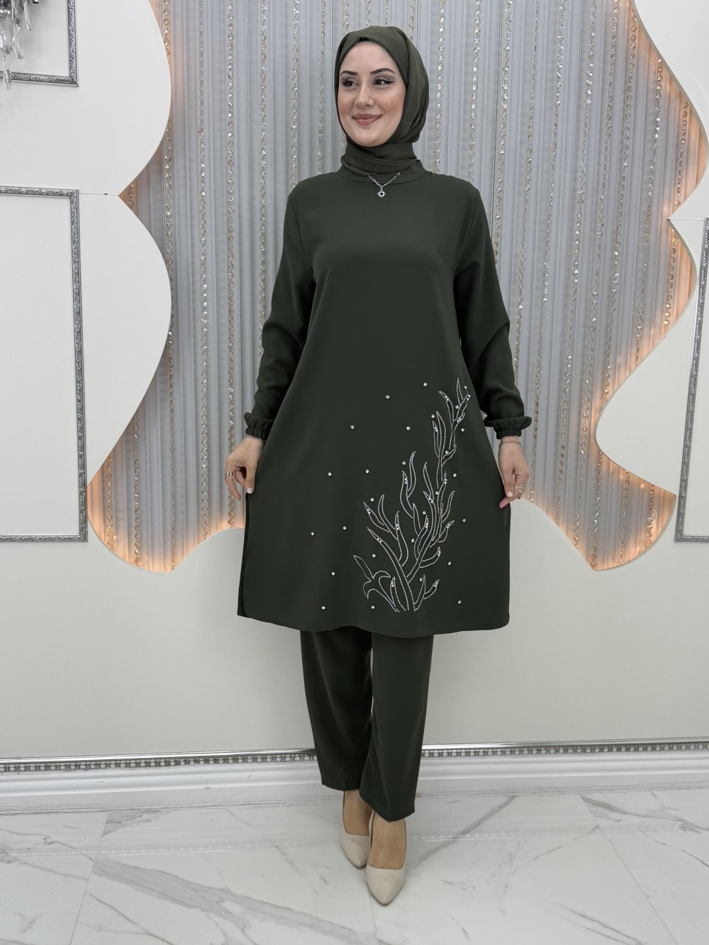 Süzün pantolonlu takım Haki