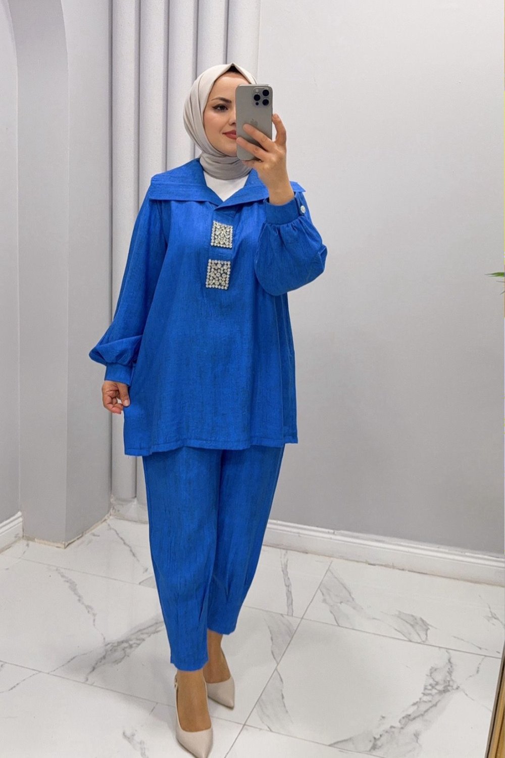 Takım ikili Güneş Saks Mavisi