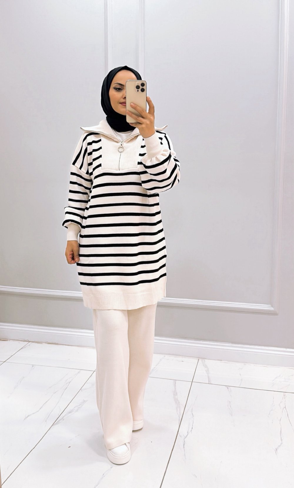 Takım Triko Çizgili Vera Beyaz