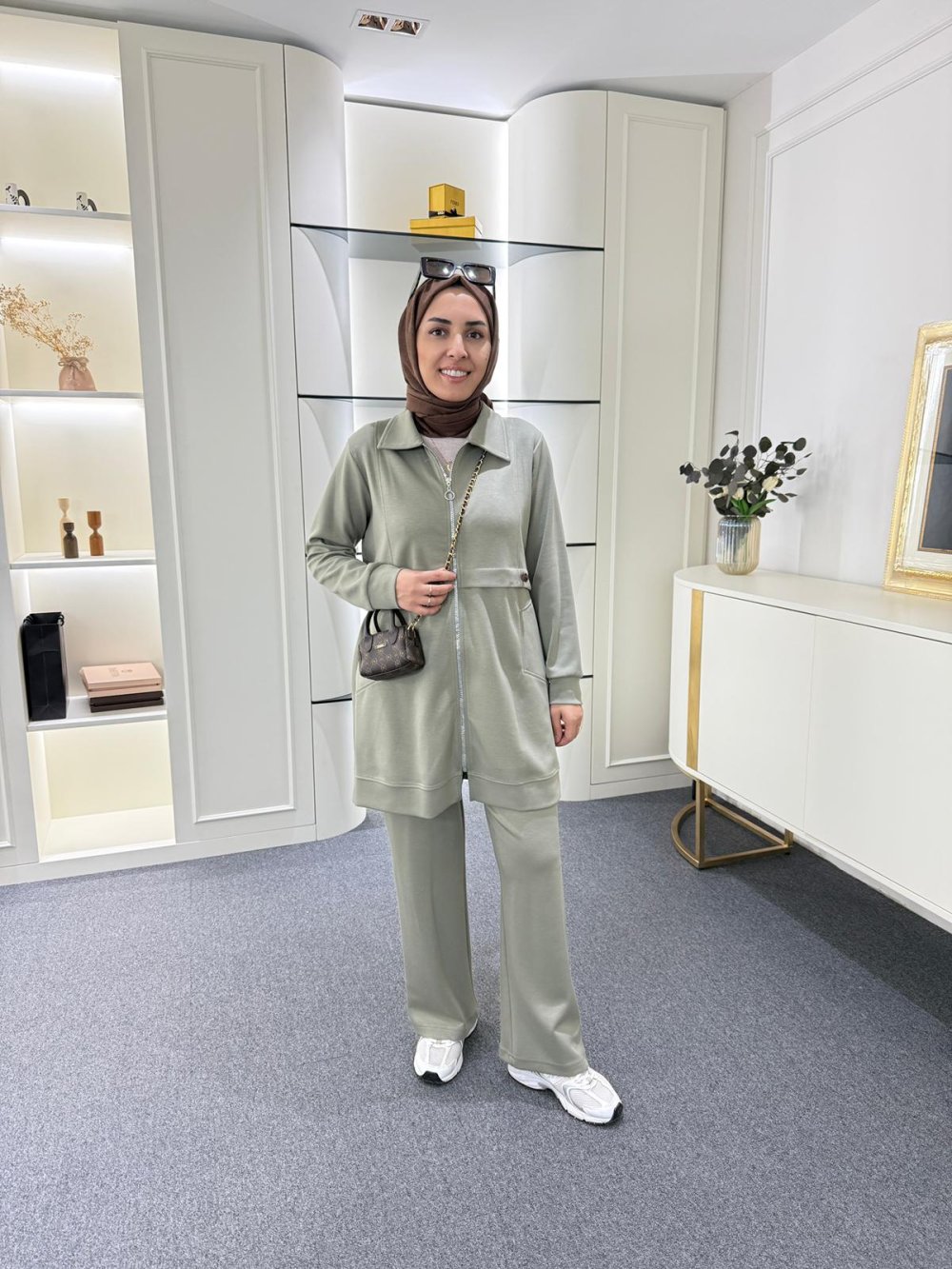 Tunik boy 85 cm’dir. Önünde metal dişli fermuarı ve yanlarda cepleri mevcuttur.