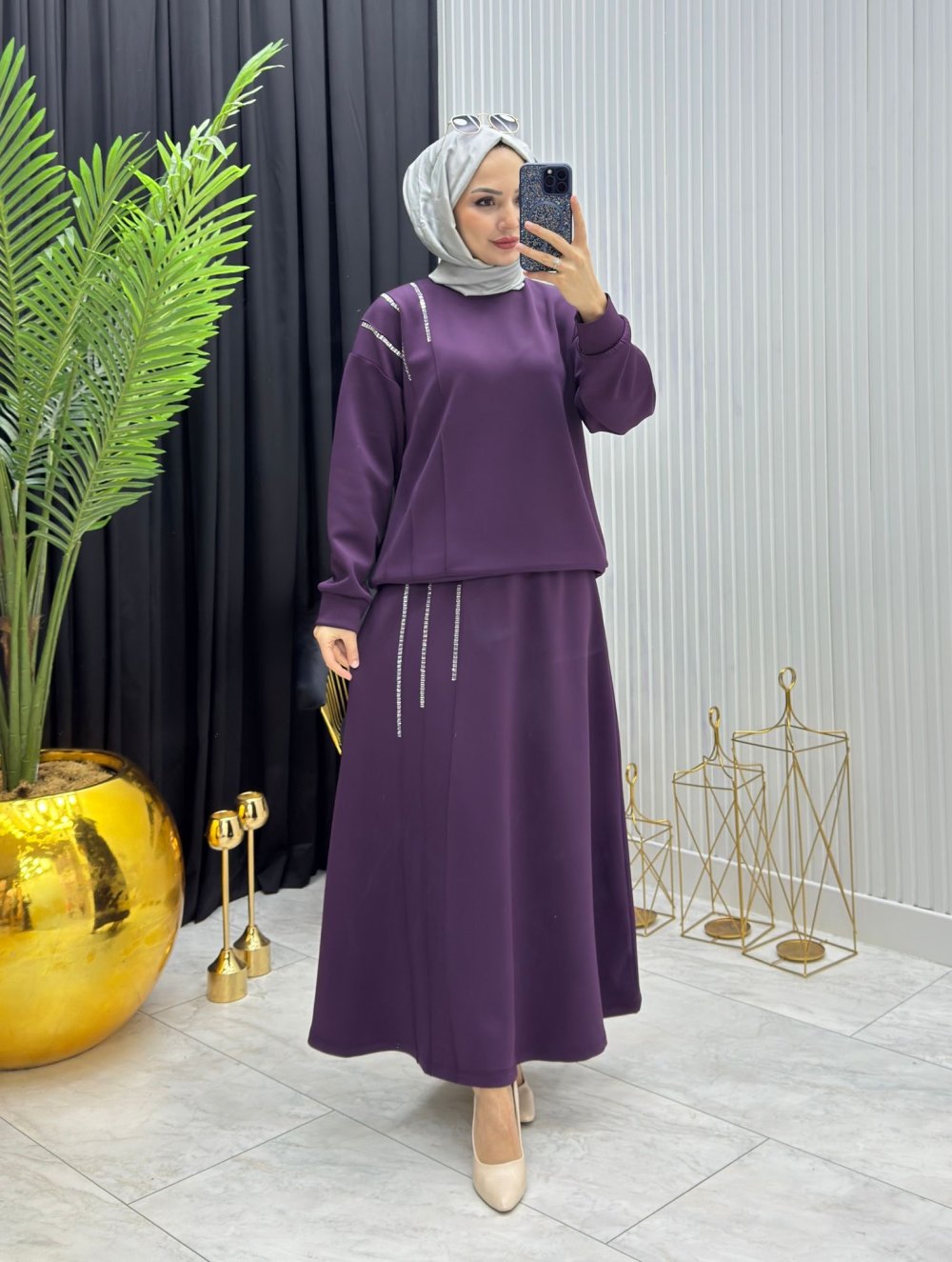 Taşlı Takım Mor Mor
