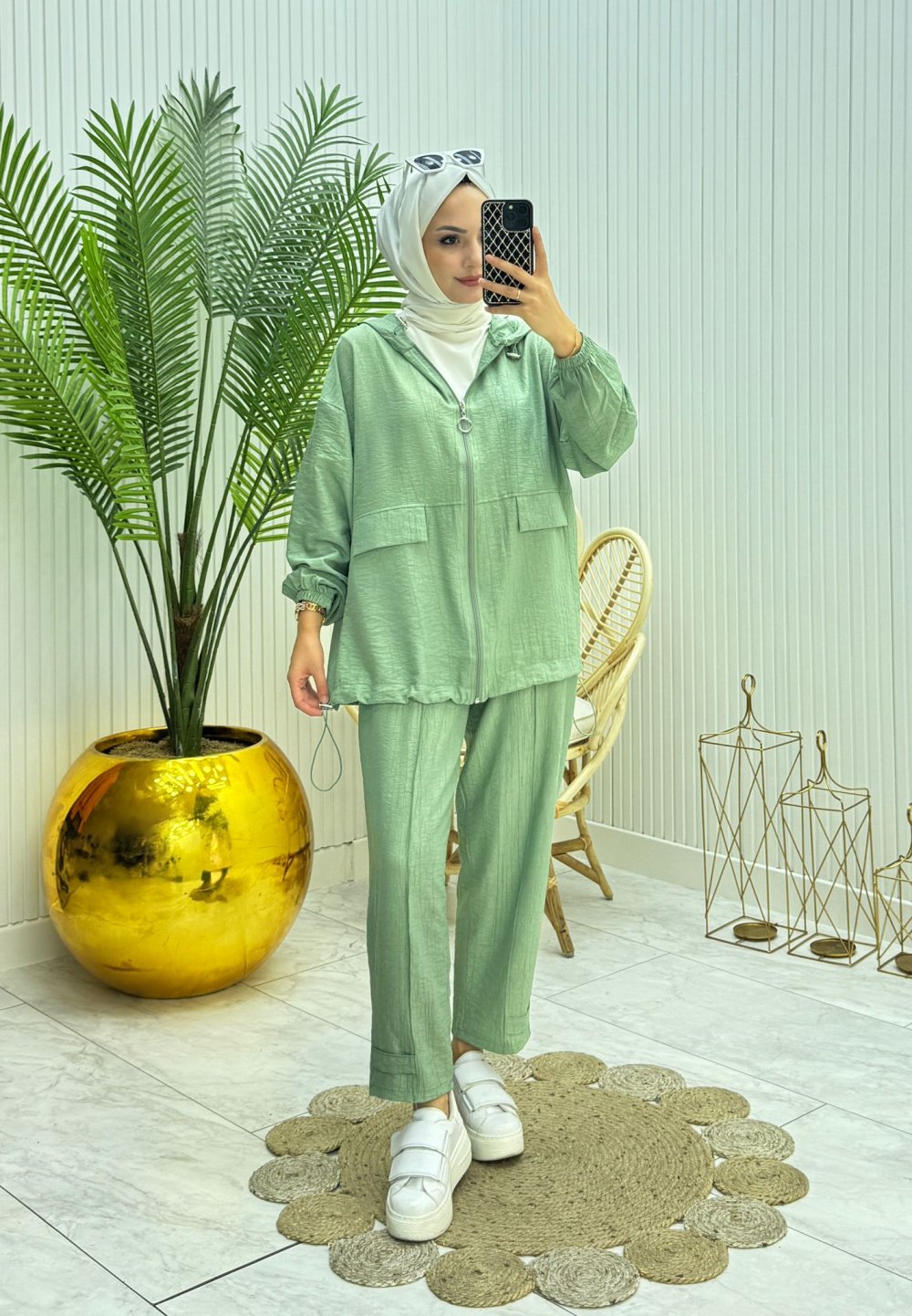 Ürün tunik ve pantolon olmak üzere iki parçadan oluşmaktadır.