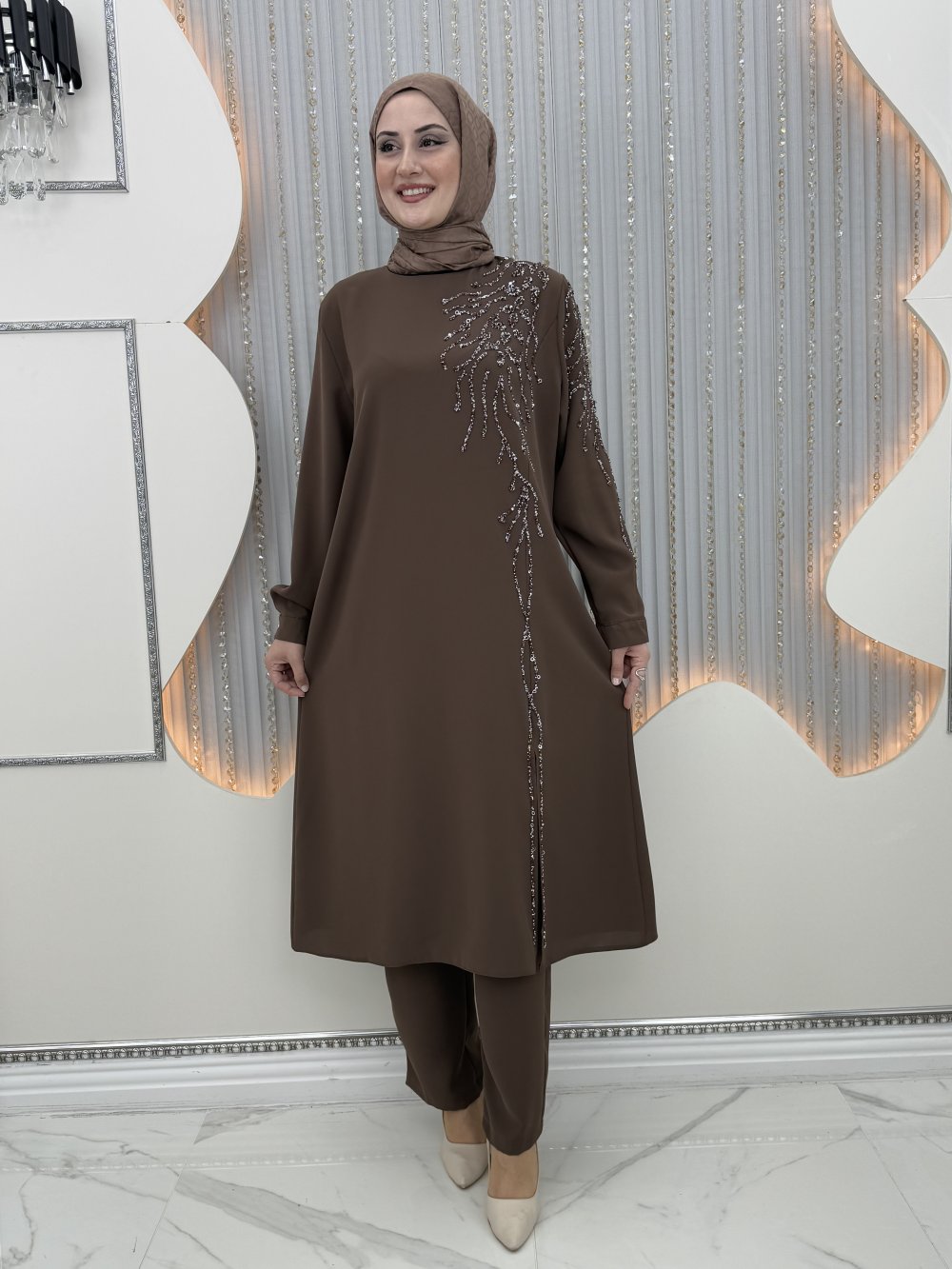 Yakut Taşlı Takım Kahverengi