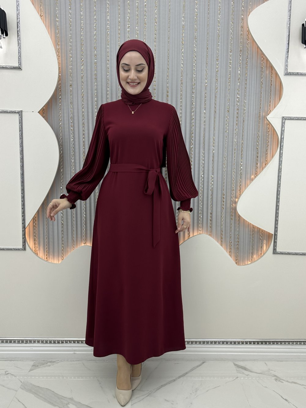 Yeni Parla Elbise Bordo