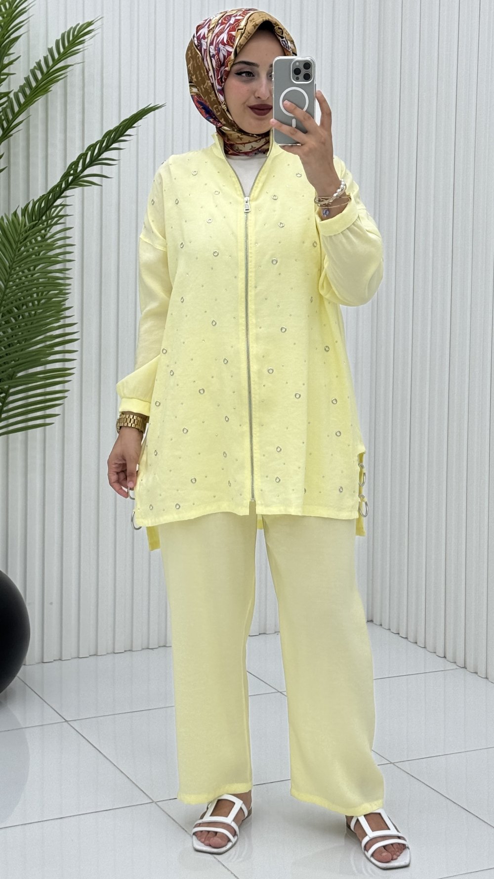 Seren Takım , hem iş hem de günlük hayatınızda rahatlıkla tercih edebileceğiniz çok yönlü bir parçadır. Şıklığı konforla buluşturan bu tasarım, sezonun en gözde modellerinden biri olacak