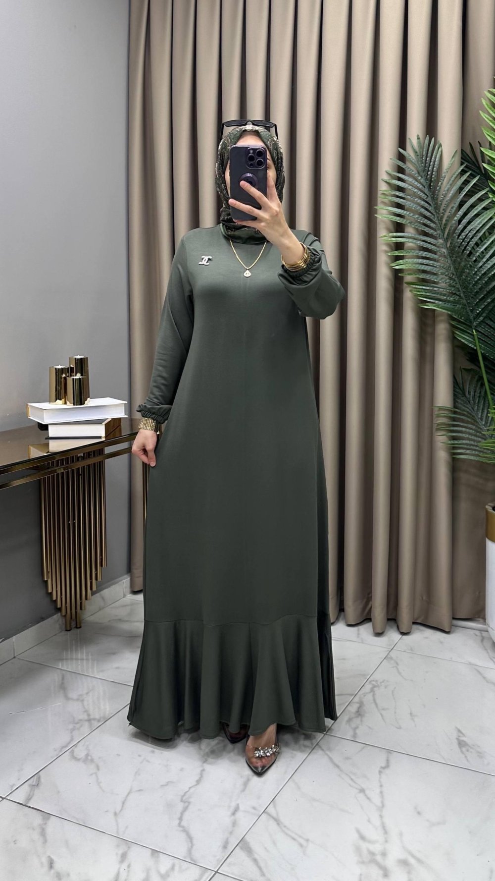 Yonca Elbise Broş Hediyeli Haki