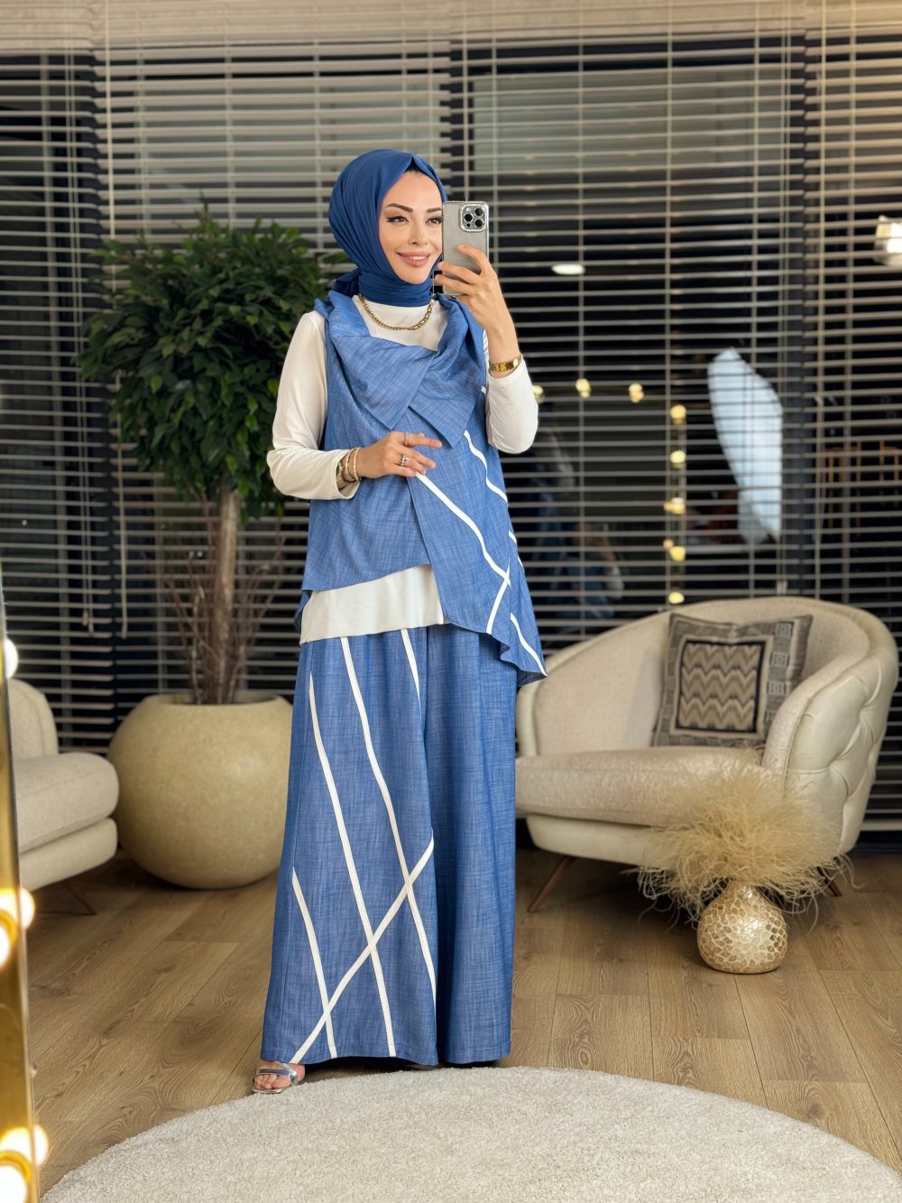 Z738 Üst Kolsuz Biye Detaylı Takım İndigo