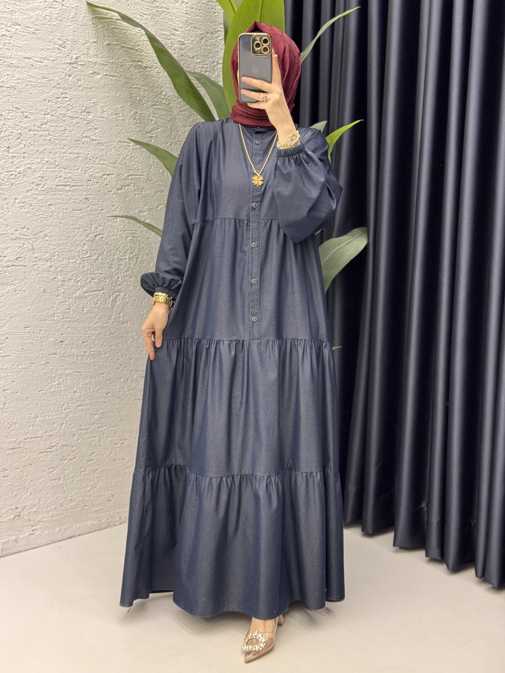 Hat belli etmeyen elbisemiz şimdi kot kumaşıyla satışta