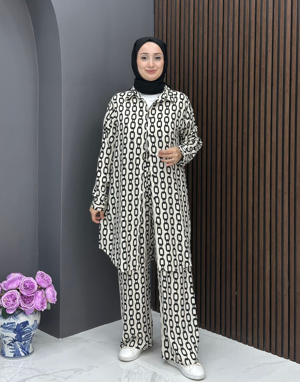 Zincir Desen Takım - Ekru