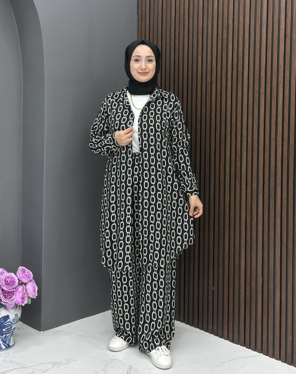 Zincir Desen Takım - Siyah